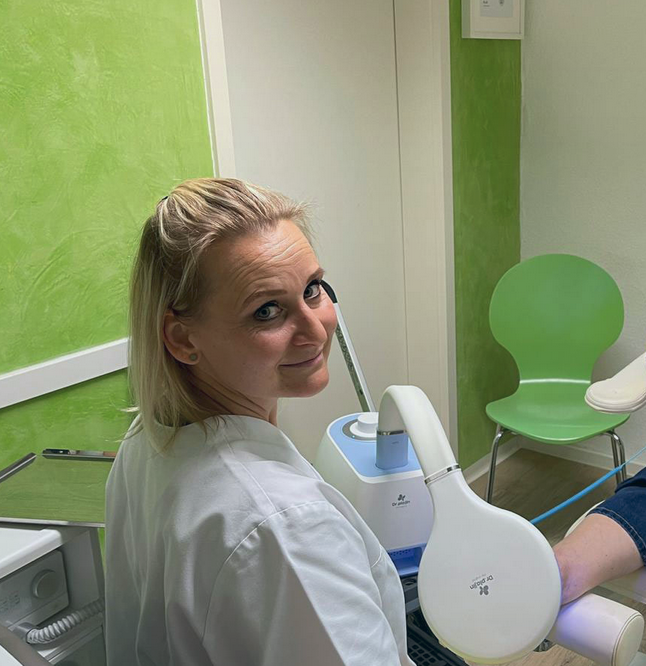 Seit über zehn Jahren bin ich als Podologin tätig und führe meine eigene Praxis in Erfurt. Bereits seit 2021 arbeite ich mit dem Kaltplasmagerät Dr.plajin – und das mit großem Erfolg. Aufgrund der hohen Nachfrage sind mittlerweile fünf Geräte bei mir im Einsatz.
